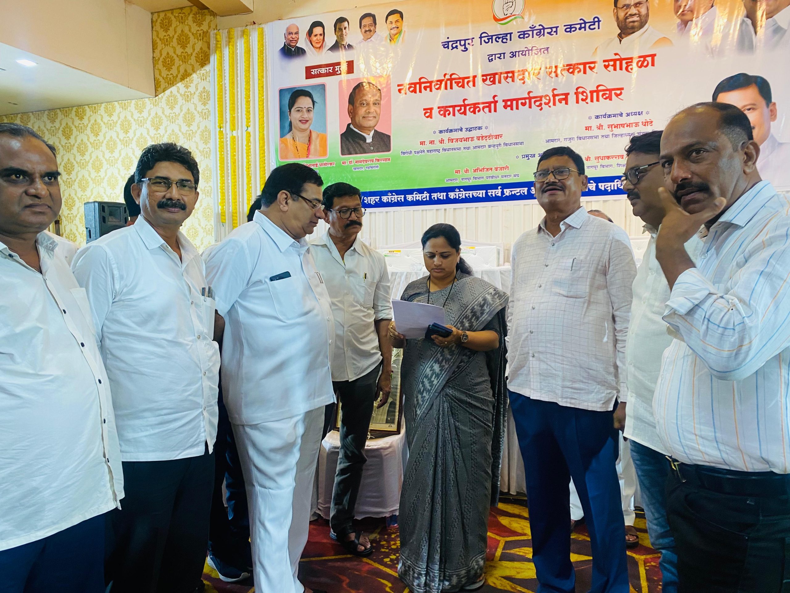 चंद्रपुर जिल्हा कॉग्रेस कमेटीतर्फे नवनियुक्त खासदारांचा सत्कार